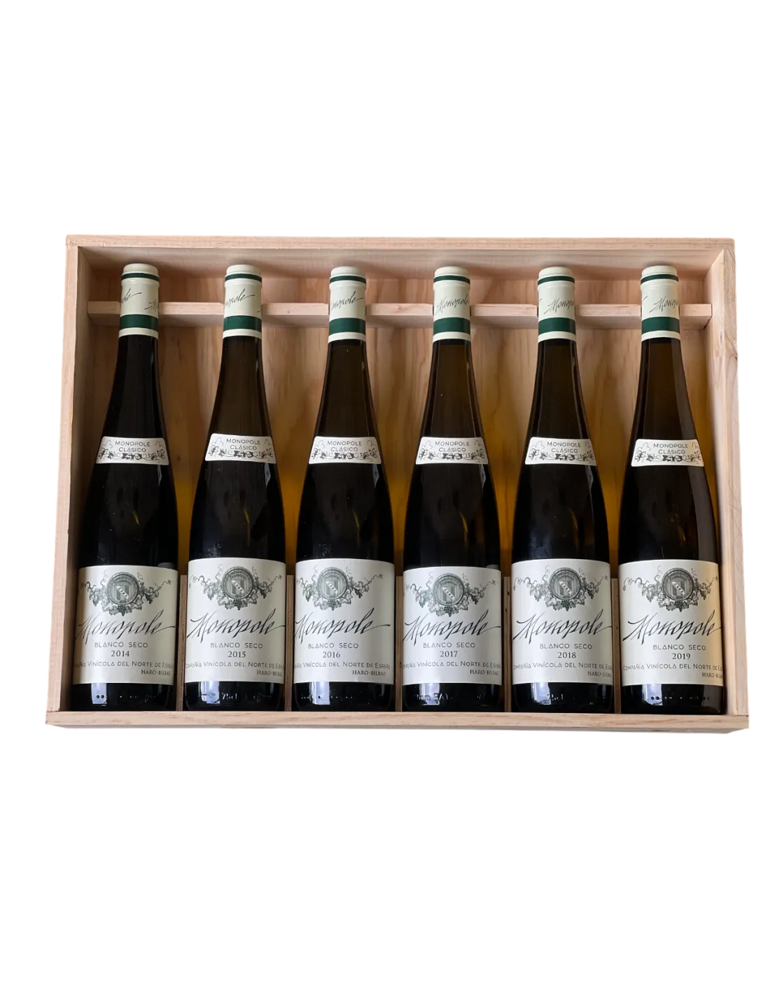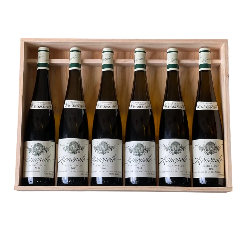 Made primarily from Viura and aged partially under flor, Monopole Clásico combines tradition and innovation in each vintage. The limited collection of Monopole Clásico brings together the 2014, 2015, 2016, 2017, 2018 and 2019 vintages, offering a unique opportunity to understand its evolution and appreciate its changing character over time.