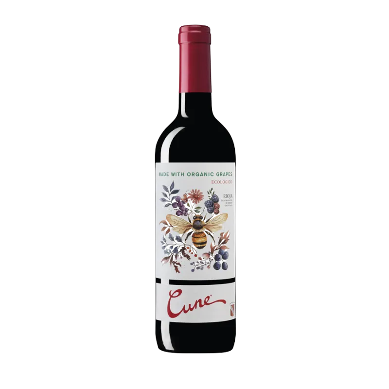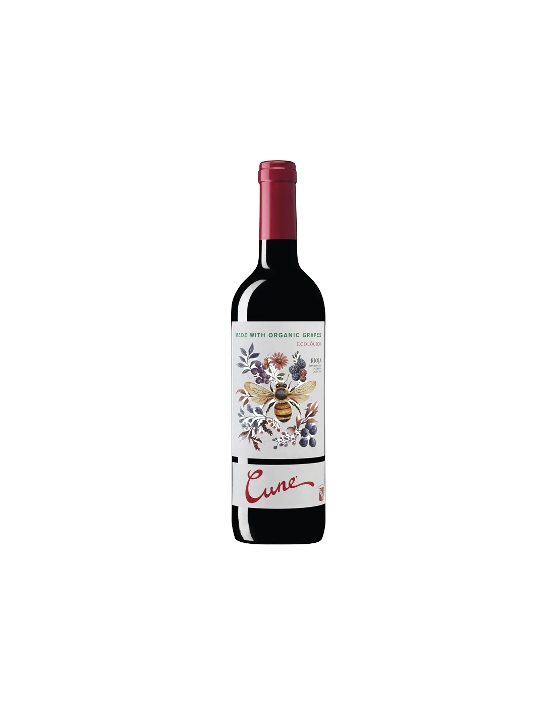 Cune Ecological is a red wine made with Tempranillo, Grenache and Graciano grapes from organic vineyards in Haro and San Vicente. Hand harvesting and natural fermentation preserve the fruity aromas and liveliness of the wine. It has a purplish color, black fruit aromas and a smooth, round flavor, ideal for pairing with Mediterranean food and cheeses.