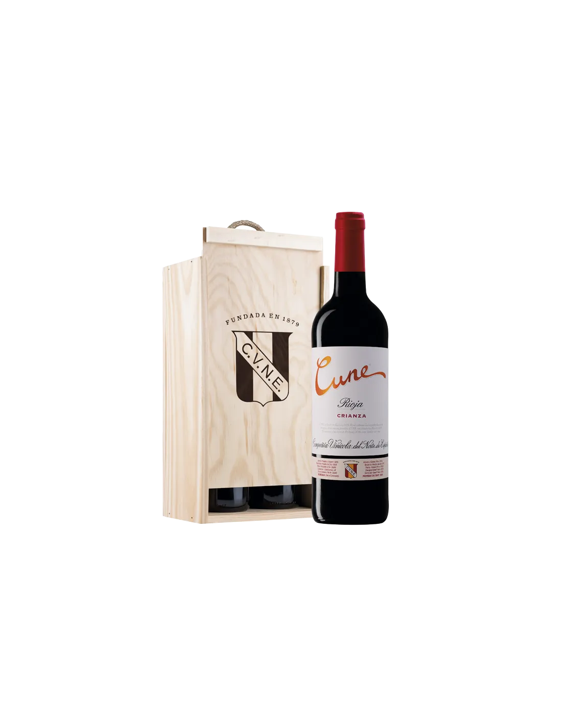 Wooden box with 2 bottles of Cune Crianza of 75ml