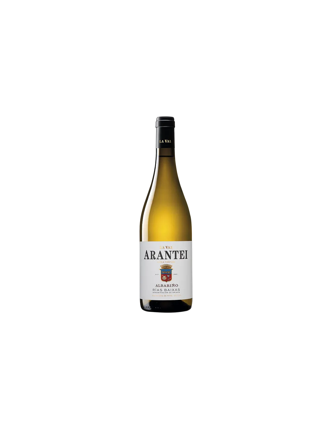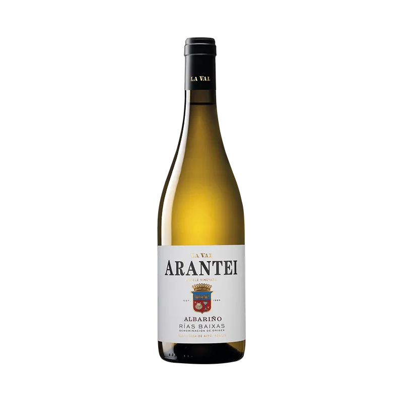 La Val Finca Arantei es un Albariño monovarietal de uvas seleccionadas de la finca Arantei, con suelos de canto rodado y exposición solar óptima. Se elabora con maceración en frío, fermentación con levaduras autóctonas y crianza de 6 meses con lías finas. Ofrece una nariz compleja y mineral, y una boca intensa y fresca, ideal para acompañar mariscos, pescados y quesos frescos.